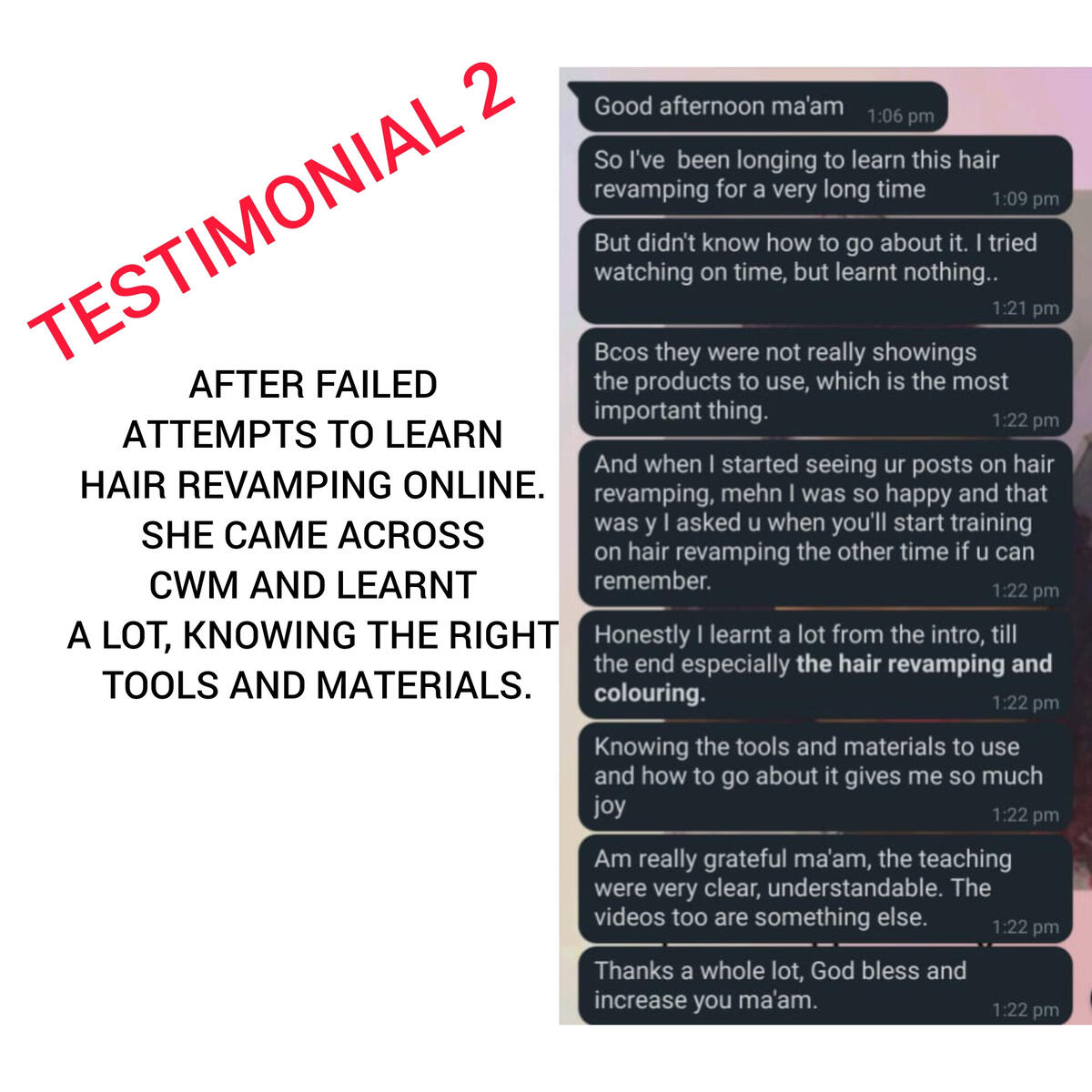Daily, people who attended the college of wig making and hair Revamping online course gets customers from both online and offline.